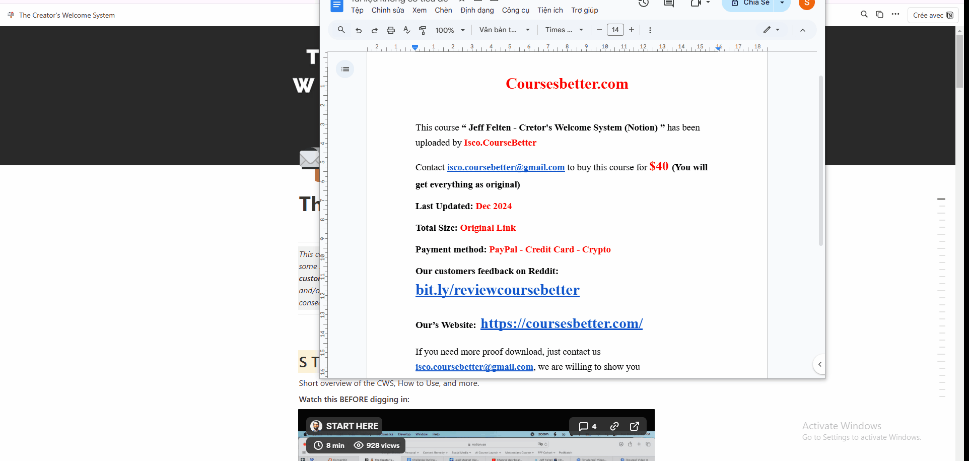 Name of course: Jeff Felten – Cretor’s Welcome System (Notion)