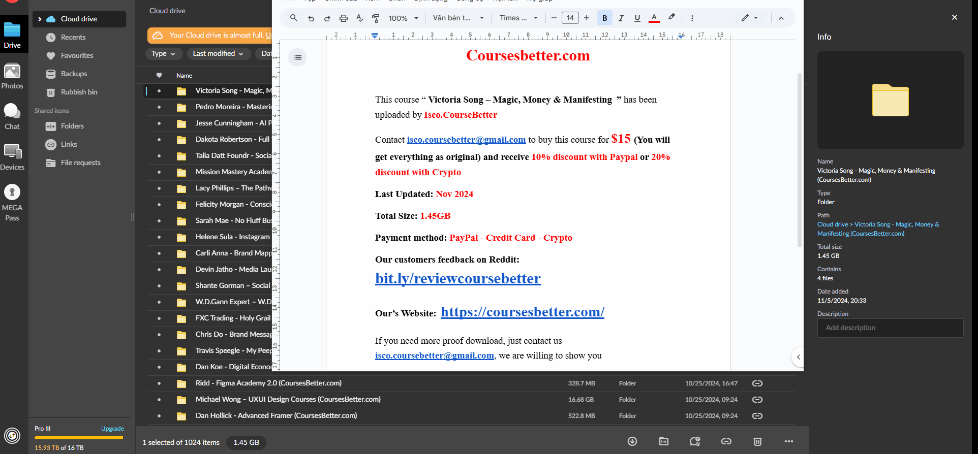 Delivery Method: Instant Download (Mega)